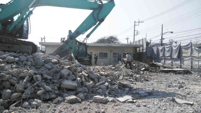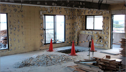 【埼玉県狭山市】工場跡地解体工事 埼玉県狭山市にある工場跡の解体工事です。 解体工事に伴う廃棄物の有無や事前に周辺環境への影響がないことを確認し解体工事を行います。 工場などの大型建物の解体工事の際には、防塵・防音養生の設置の他、外部足場、負圧除塵装置の設置、排水処理装置や密閉養生などの付帯工事もございます。